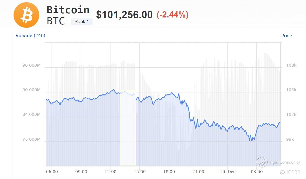 Not a lot, around -2.4% overall. It did fall below the $100,000 price level on Thu, 19 Dec 2024, around 2:30am US time.