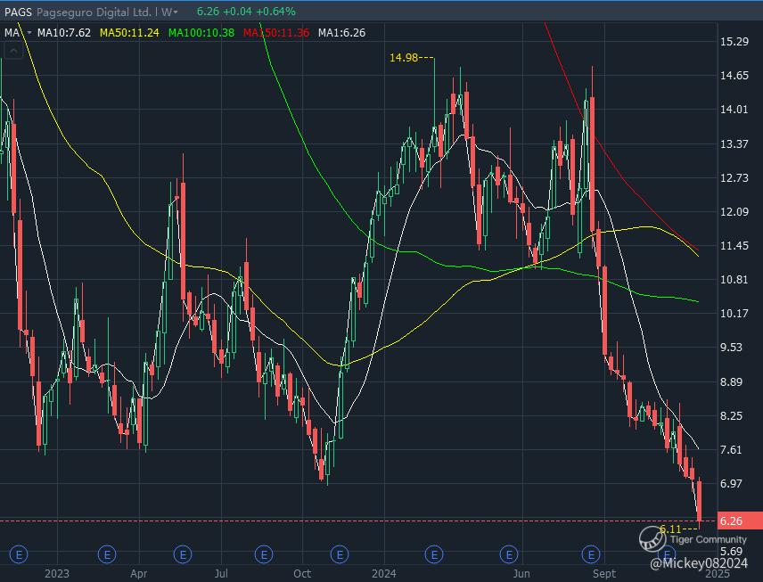 This indicates the company is experiencing strong demand, with stable margins and profits, and a consistent outlook. As a result of my research into PAGS, my conviction in the company has strengthened, even as the stock price has dropped. This has created a clear buying opportunity. Currently, the stock is trading at a price-to-earnings (P/E) ratio of just 5.13, and analysts estimate earnings per share (EPS) of around $1.2 for 2025. This means the forward P/E ratio is approximately 8, while the business continues to project about 15% annual growth.