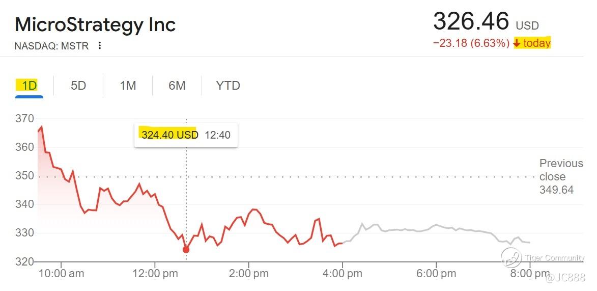 MSTR closed at $326.46, down -6.63% from the previous day's closing price.