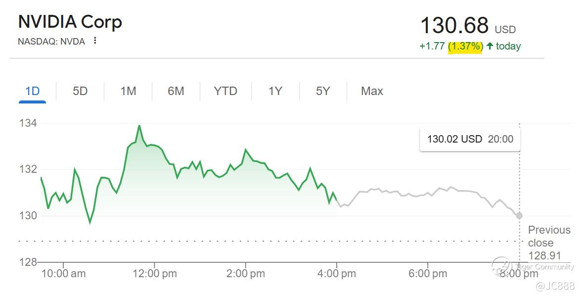 Case in point - shares of $NVIDIA(NVDA)$ rose +1.4%, closing the day at $130.68 per share.