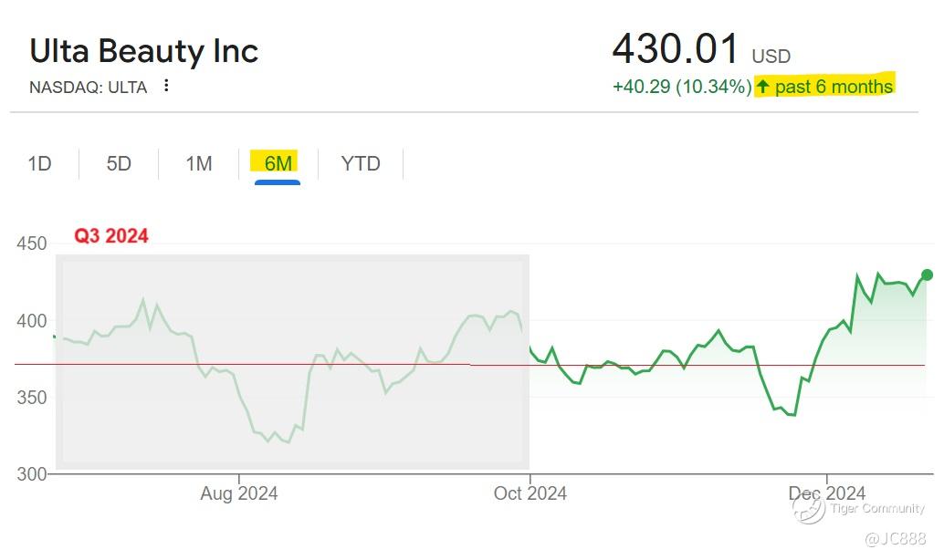 Ulta Beauty surged by +14% on 14 Aug 2024, after the stake was revealed. (see above)