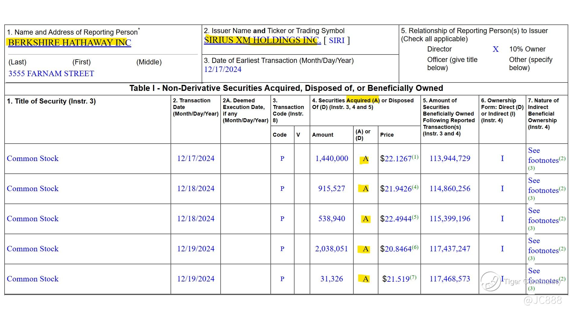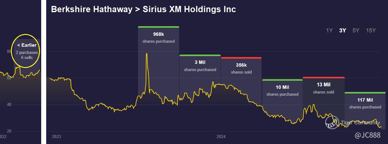 Despite dismal earnings, Berkshire recently purchased more of SIRI over a 3-day period, 17 Dec to 19 Dec.