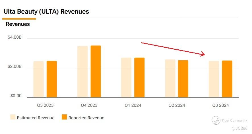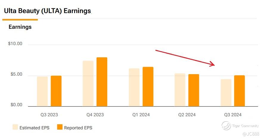Ulta Beauty’s earnings per share has been on the decline since Q4 2023.