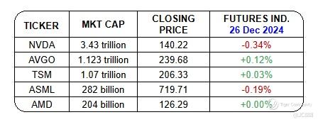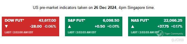 In the meantime, US stock index futures were largely steady on Wed, 25 Dec 2024 evening as markets were shut for Christmas.