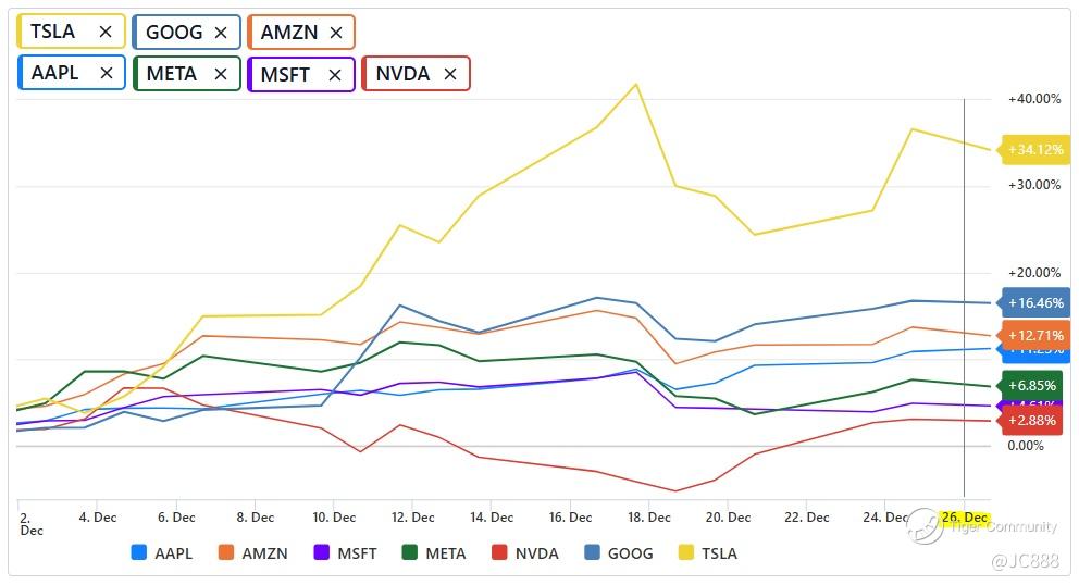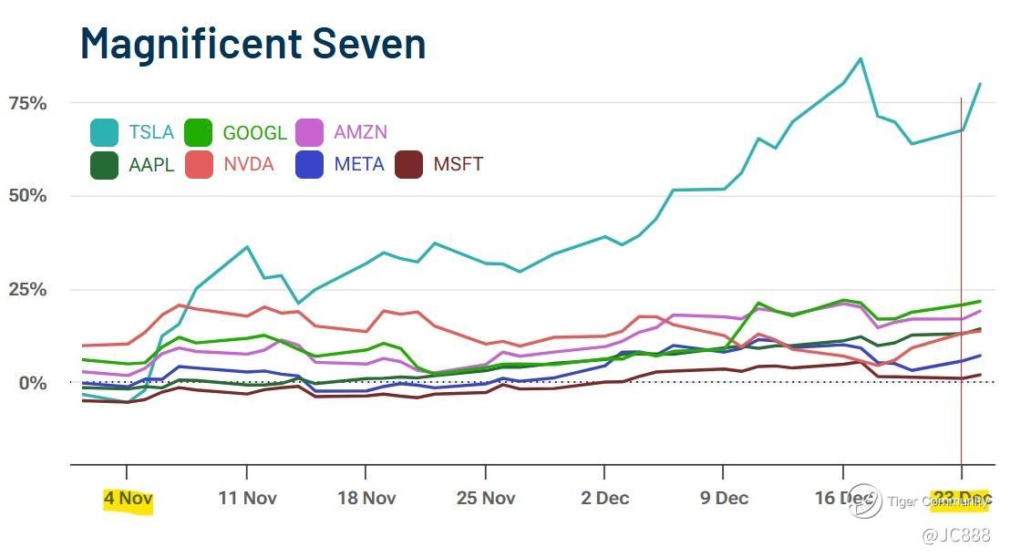 Wrapping up the post Christmas Friday, it begs the question, will the Magnificent 7 continue with its downwards trend or break the cycle ?