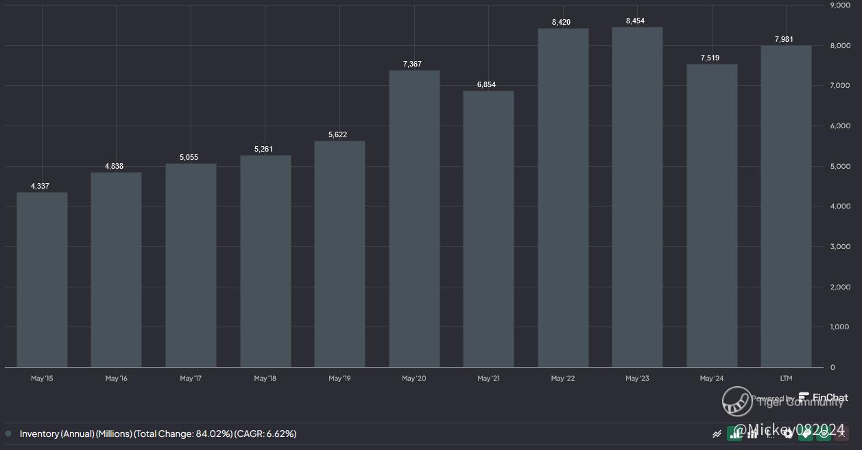Repeated Inventory Surges Even after addressing the initial surplus, Nike's inventory levels climbed again in subsequent quarters, signaling ongoing supply chain mismatches or misaligned demand forecasting.