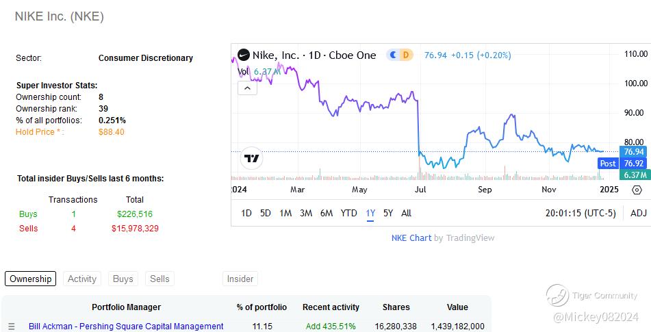Prominent Investors Buying In: A key point of interest is that several well-known investors have recently added to their Nike positions. Notably, Bill Ackman increased his Nike stake by 435%, making the stock over 11% of his portfolio. Ackman is a highly regarded investor managing $13 billion in assets. While he has made mistakes, his confidence in Nike at current levels suggests optimism about the company’s future.