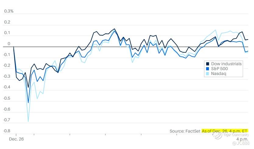 Dow Jones Industrial Average closed fractionally higher on Thu, 26 Dec 2024, stretching its winning streak to 5 sessions despite light trading volumes.
