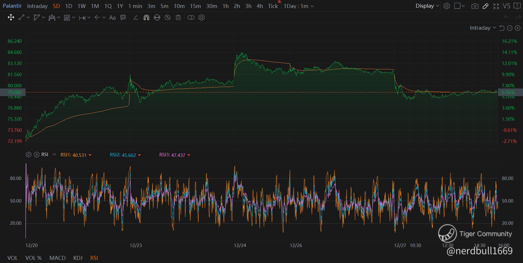 I would expect Palantir to make a recovery to above $82 when market open today (30 Dec).
