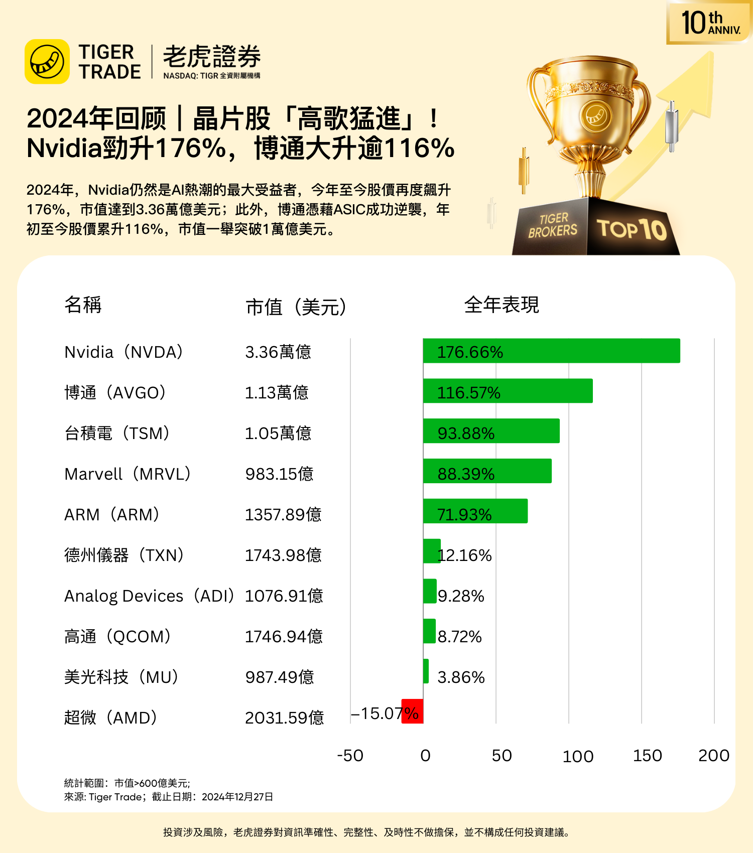 2024年回顧|晶片股「高歌猛進」!Nvidia勁升176%成「領頭羊」,博通大升逾116%