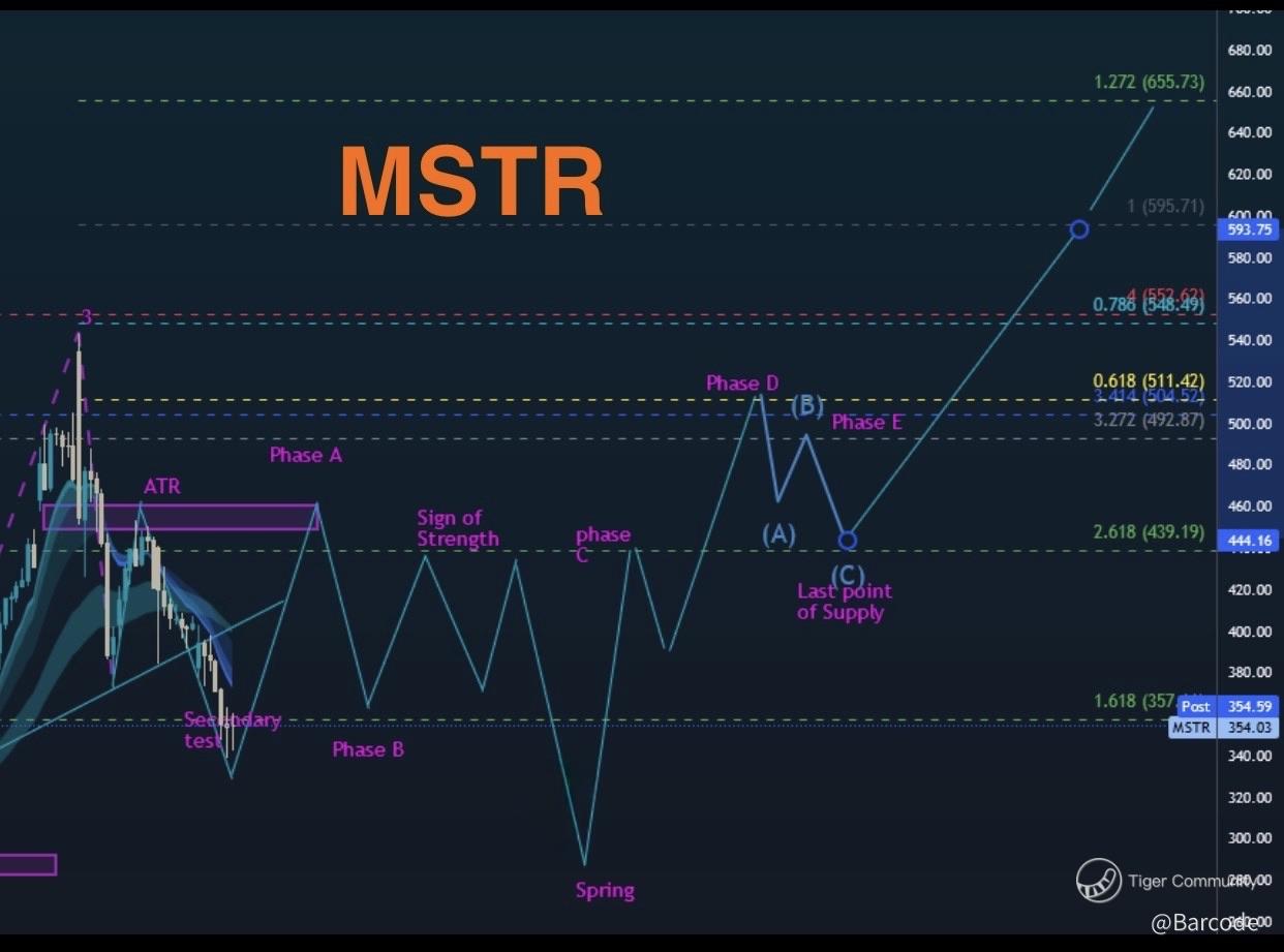 Insight: MSTR has a critical support level at $300, and a break below this level could impact the market. The Wyckoff Spring pattern suggests potential explosive results. However, it is important to consider the inherent risks in the stock market and fluctuations in stock prices.