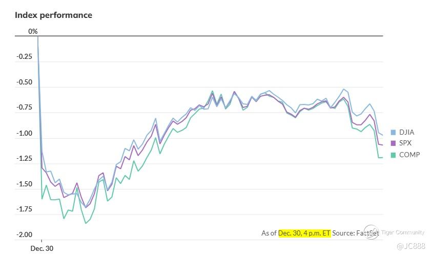 US stocks ended sharply lower on Mon, 30 Dec 2024 as some traders took profits before the end of the year, dimming hopes for the “Santa rally”.