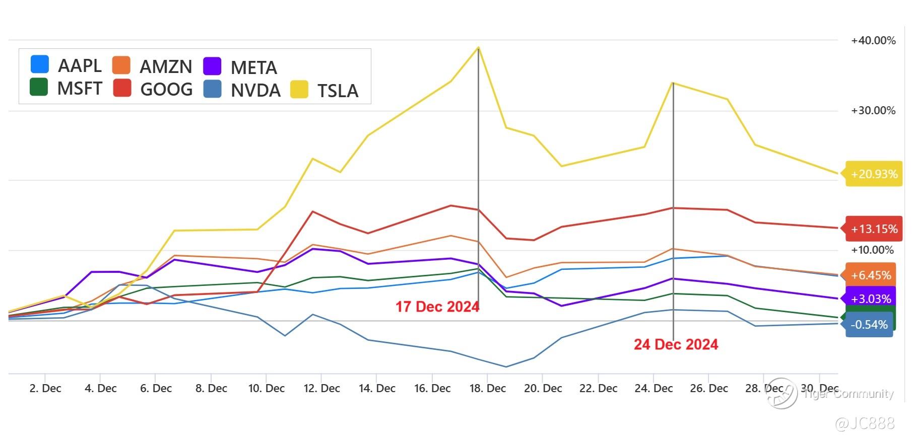 After the US election in early November, investors returned to pile up on the Magnificent Seven.