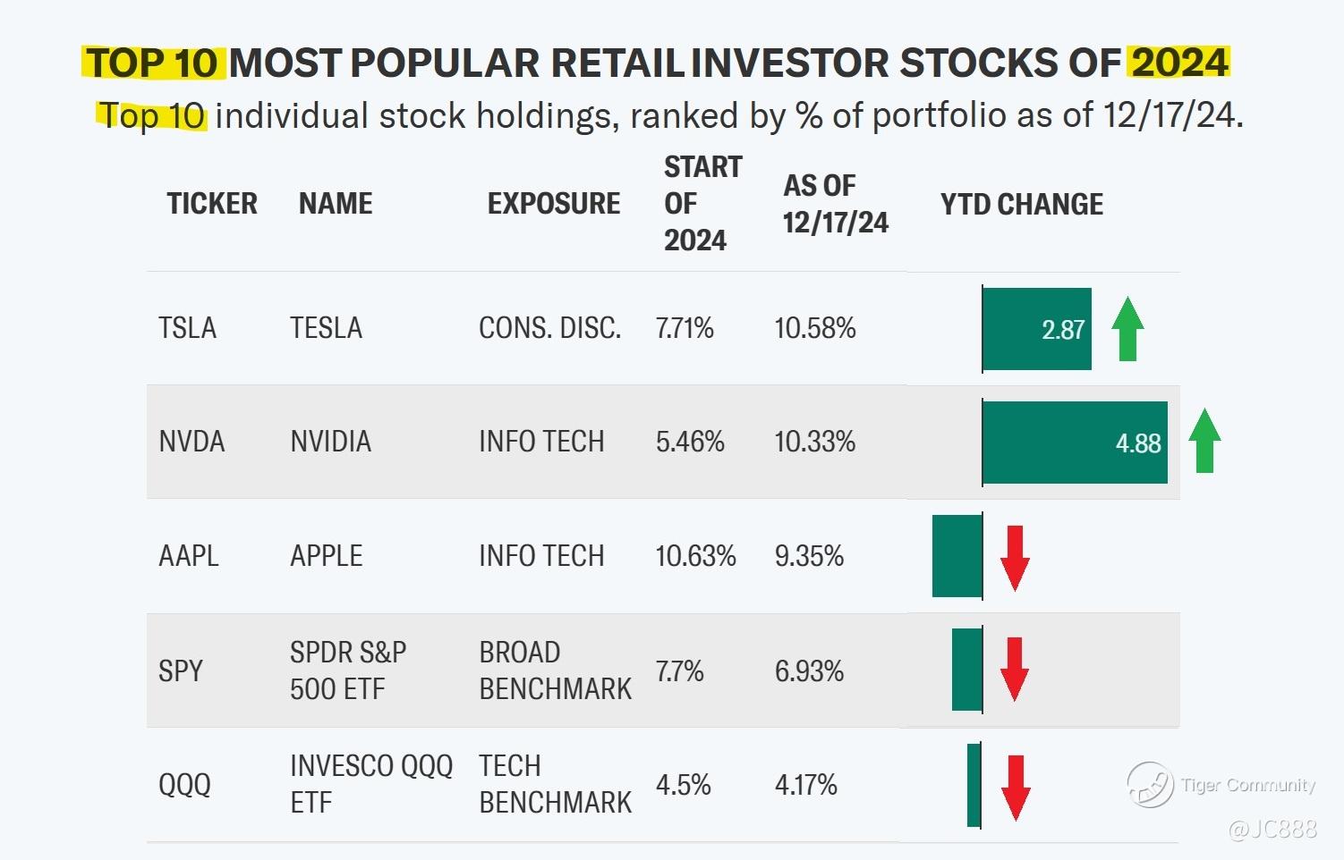 The 6 stocks collectively pulled in $67.7 billion in total retail inflows in 2024.