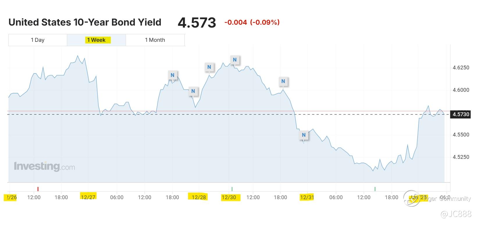 Latest yield closing on 31 Dec 2024 was 4.573%, a shade lighter than its peak, nonetheless still elevated.