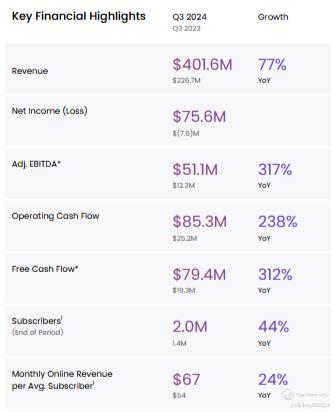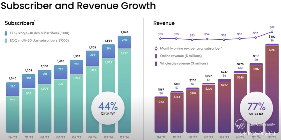 Hims has seen remarkable growth due to its affordability, convenience, and personalized care. Unlike traditional healthcare systems, Hims eliminates the need for in-person doctor visits or pharmacy trips, offering a streamlined and cost-effective approach. The company’s subscriber base has grown to 2.05 million, a 44% year-over-year increase. Additionally, revenue per subscriber is up 24%, contributing to an overall 77% revenue growth in Q3.