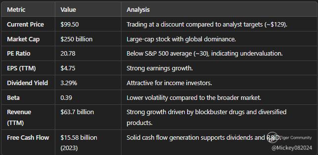 Merck presents a compelling investment opportunity, supported by strong fundamentals, an undervalued stock price, and a solid growth trajectory. While risks like patent expirations and regulatory changes exist, the company's diversified pipeline and financial stability position it well for the future.