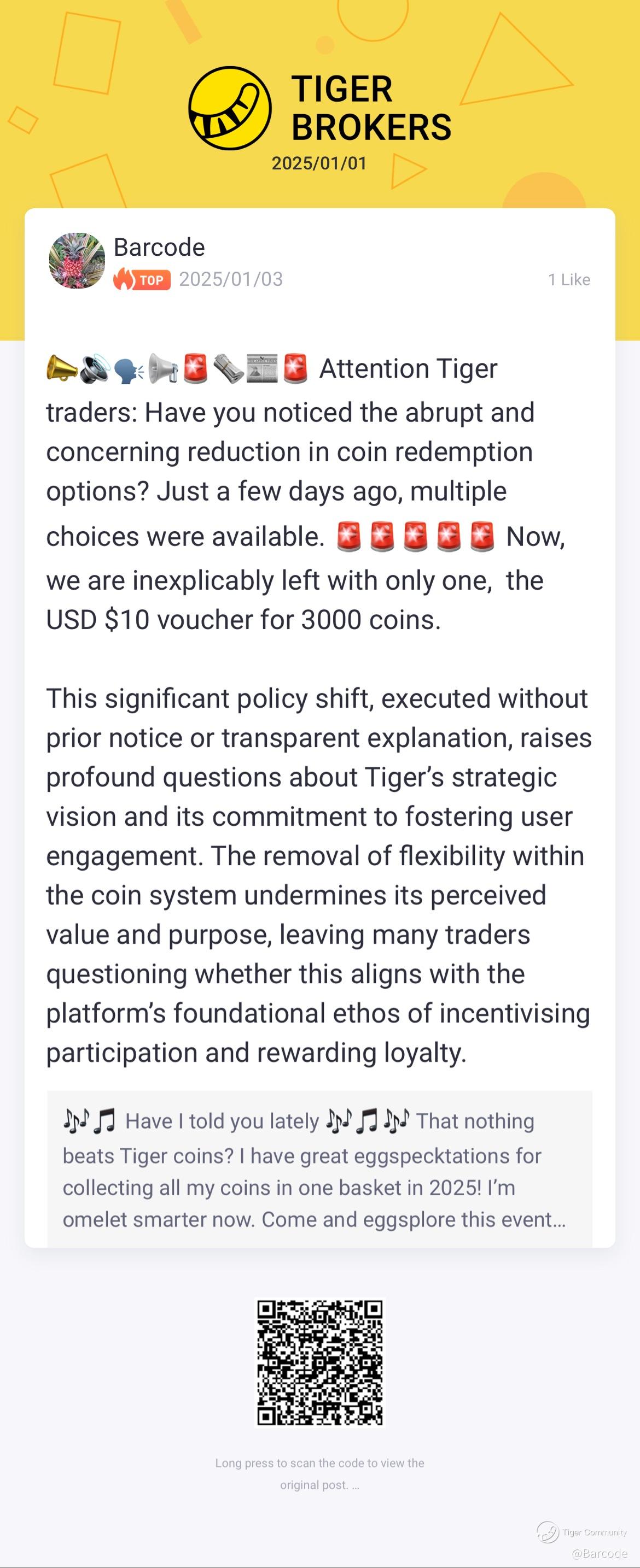 Restoring redemption options addresses the symptom, but the erosion of trust is a deeper wound. As a leading platform, Tiger must now take consistent and meaningful action to rebuild the confidence that has been undermined. Trust is the cornerstone of any community-driven platform, and regaining it will require not just resolution but a commitment to excellence in user experience and operational integrity.