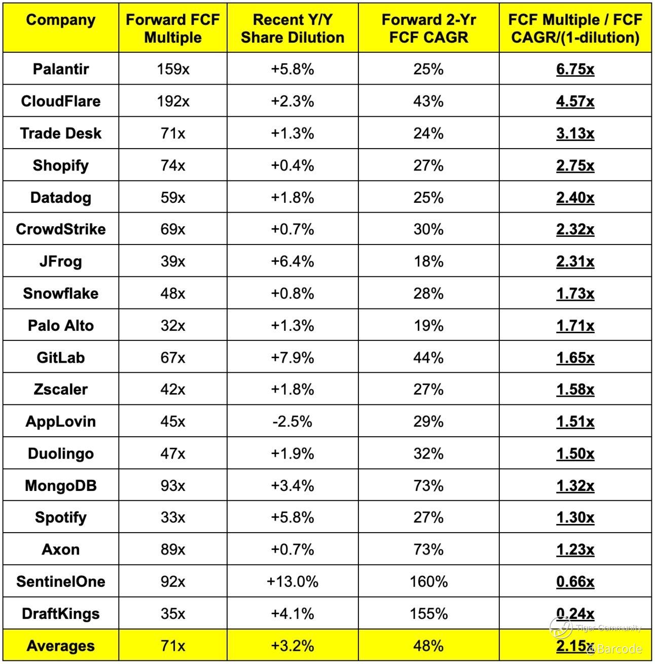 Palantir’s +5.8% year-on-year share dilution, outlined in the free cash flow comparison sheet, is a critical point of concern. This strategy, while funding growth and compensations, undermines existing shareholder value by diluting earnings per share (EPS) and free cash flow per share (FCF per share).