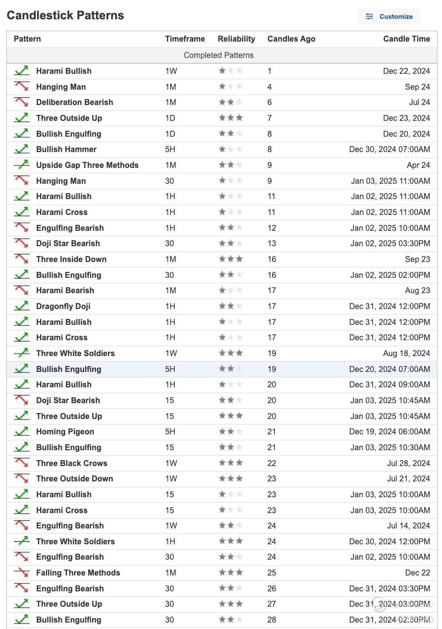 Moving Averages (MA). Both the MA50 line and the MA200 line are on an uptrend. The last candle is below the MA50 line and above the MA200 line. This implies a bearish mid-term and bullish long-term.
