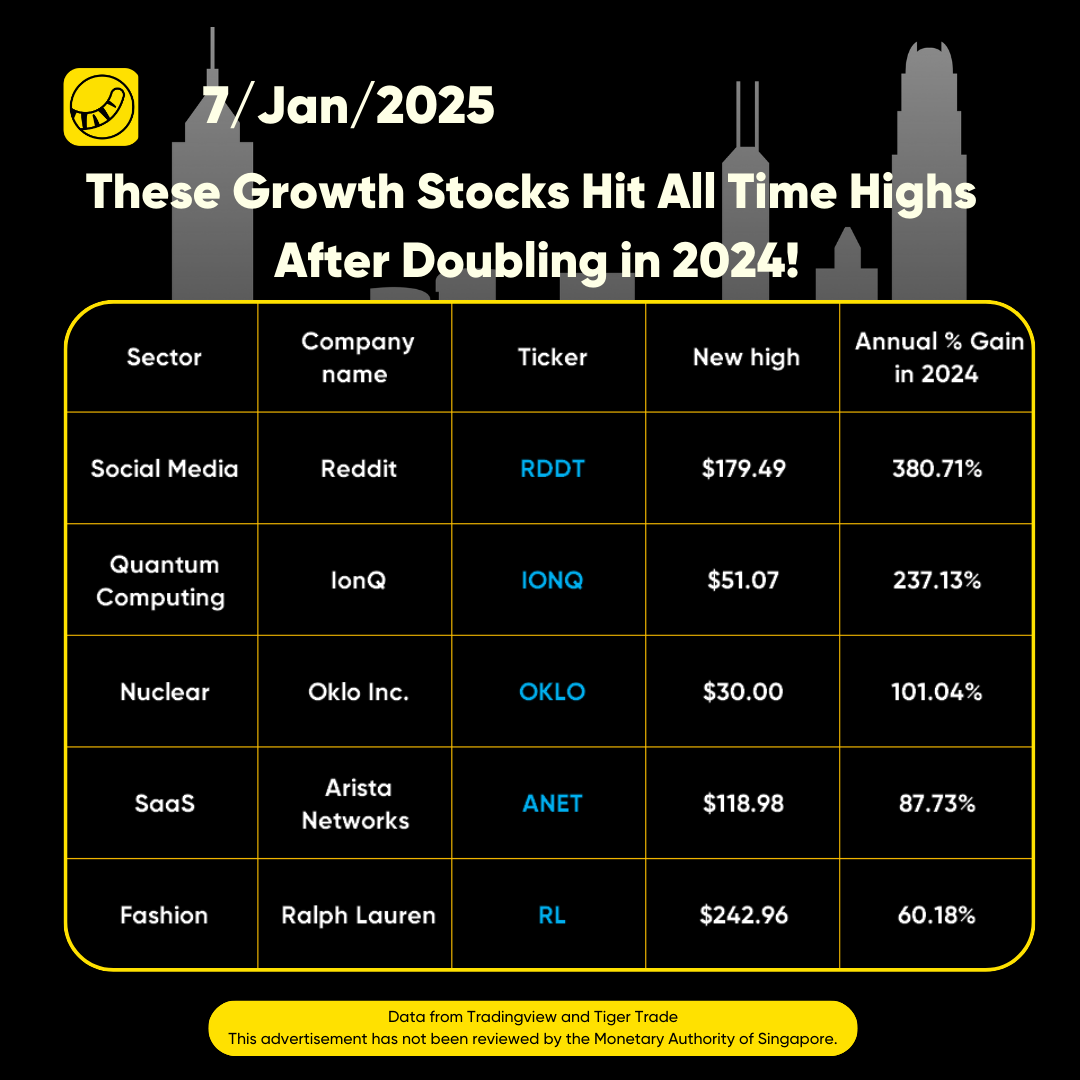 4. $Arista Networks(ANET)$ soared to an all-time high at $118.98, an 87.73% increase in 2024.