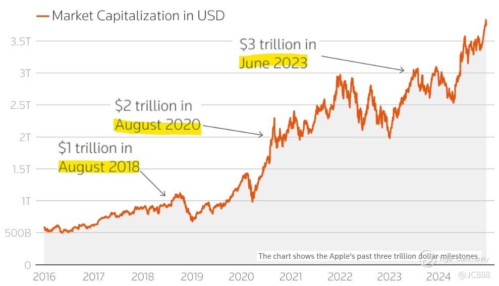 This Silicon Valley firm, driven by the so-called iPhone supercycle, has been the first US company to hit its previous trillion-dollar milestones. (see above)