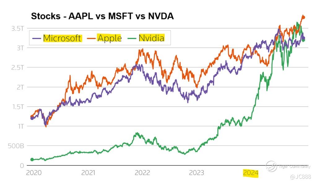 The company has pulled ahead of $NVIDIA(NVDA)$ and $Microsoft(MSFT)$ in the race to the monumental milestone.