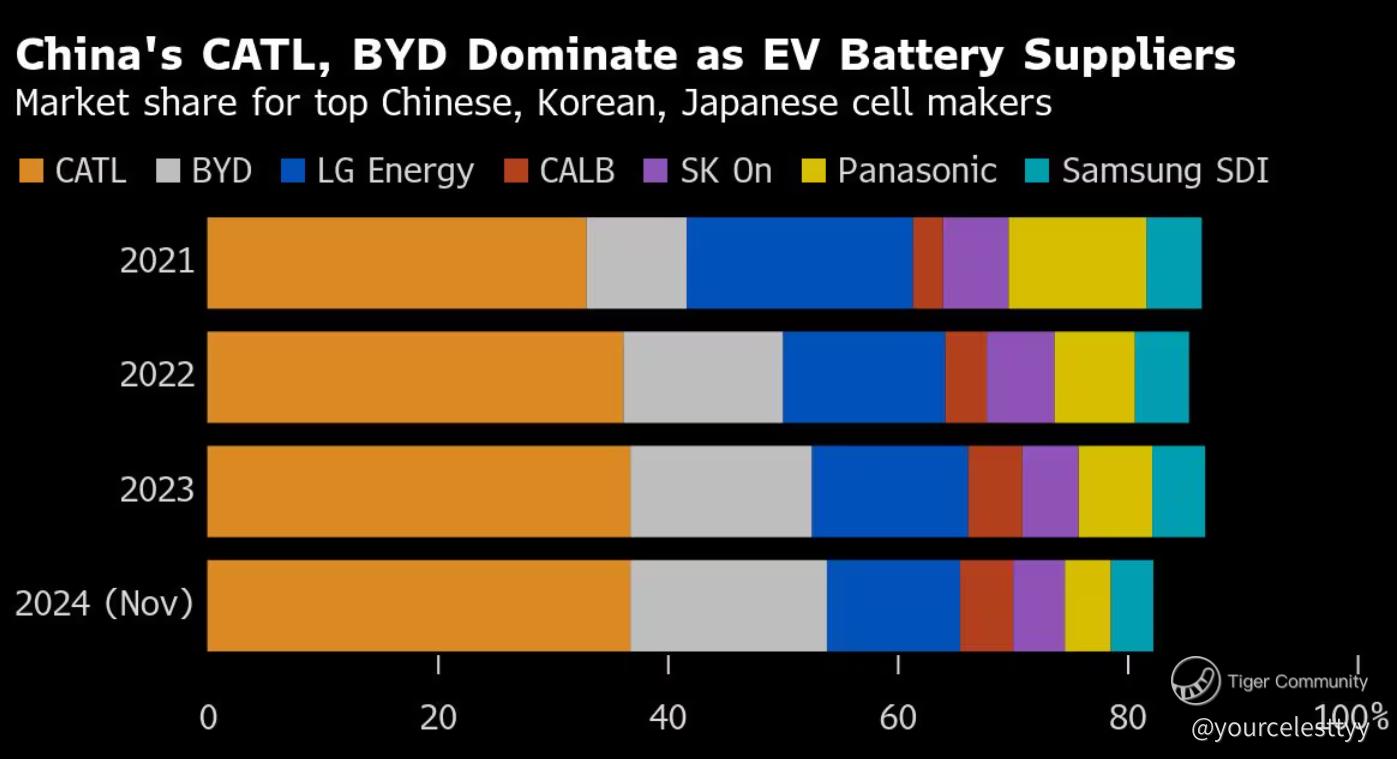 Tesla ( $Tesla Motors(TSLA)$ ) remains the sector leader but saw a 5% decline this week amid heightened competition and pricing pressure.