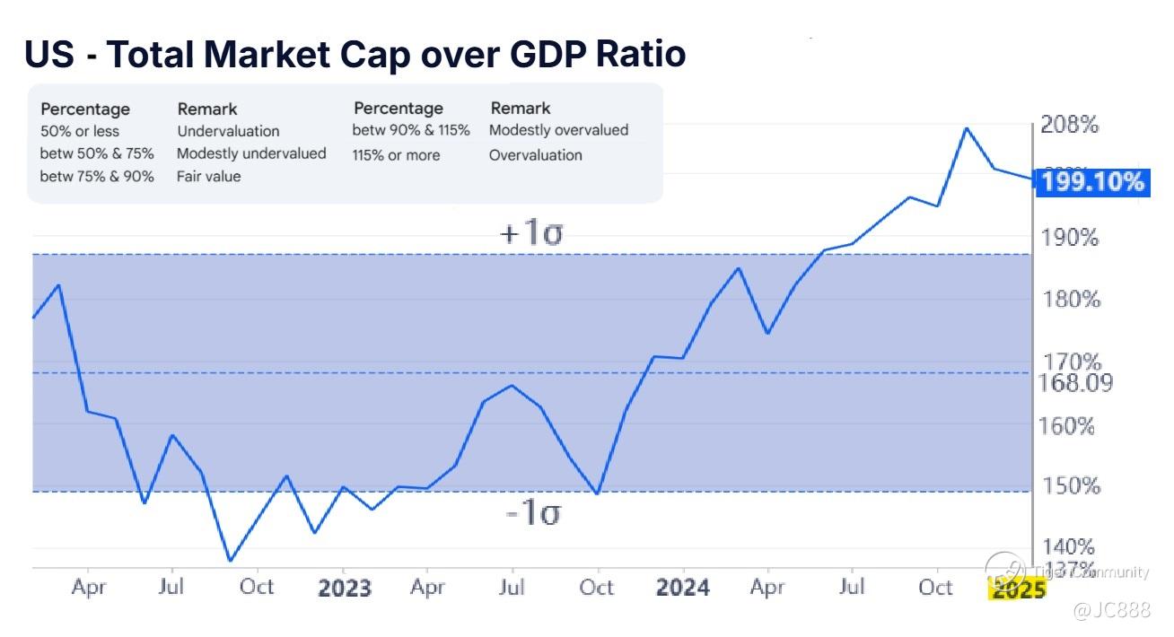 Additionally, the “market cap-to-GDP” ratio” (aka the Buffett indicator), have estimated that US stock market is extremely overvalued. (see above)