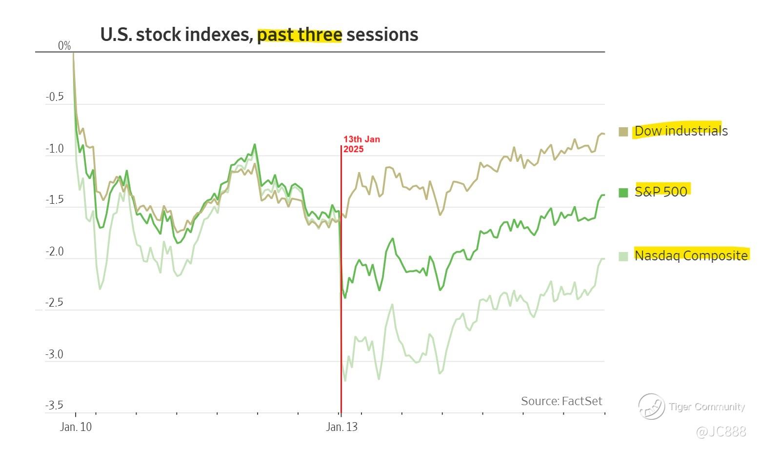 On Mon, 13 Jan 2025, US stocks continued to perform poorly, even though most media termed it as “mixed”.