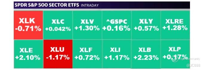 Remaining 9 sectors were “green” where the 3 best sectors were - Materials (XLB), Energy (XLE) and Healthcare (XLV).