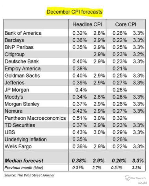 Above is a summary of what some US banks think CPI inflation for December 2024, will be.