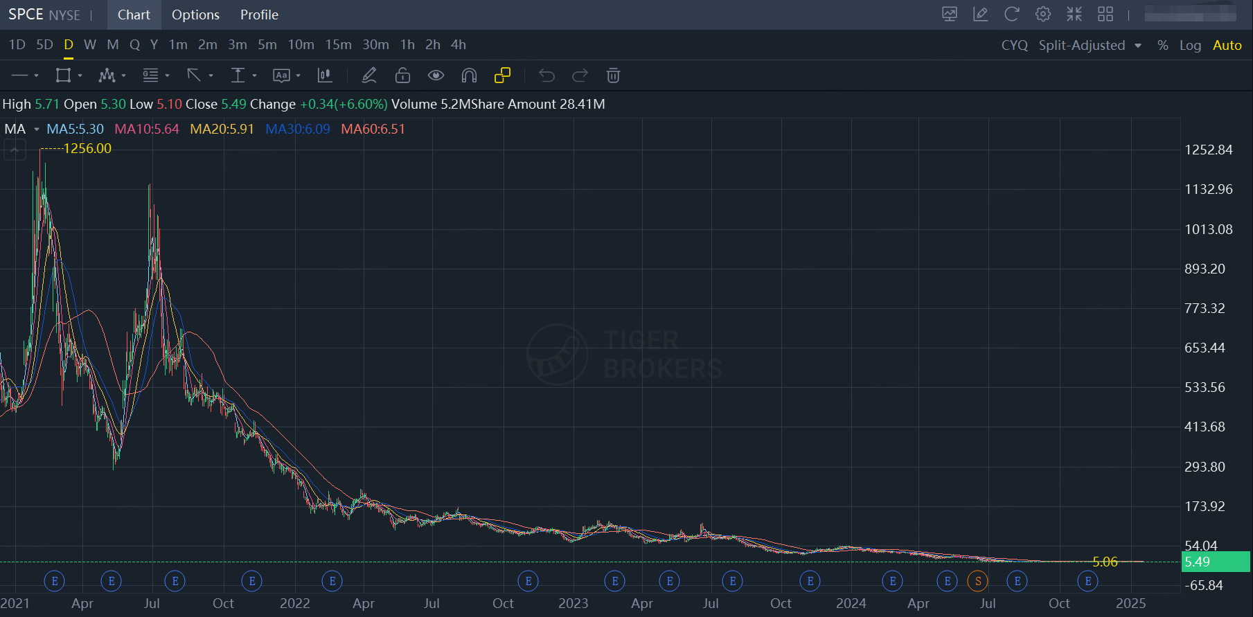 2. $Virgin Galactic(SPCE)$ rose 6.6%, and the stock price has been collapsing for several years