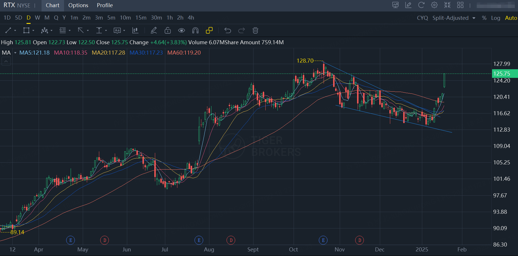 1. $RTX Corp(RTX)$ jumped 3%, and its rating and target price were raised.