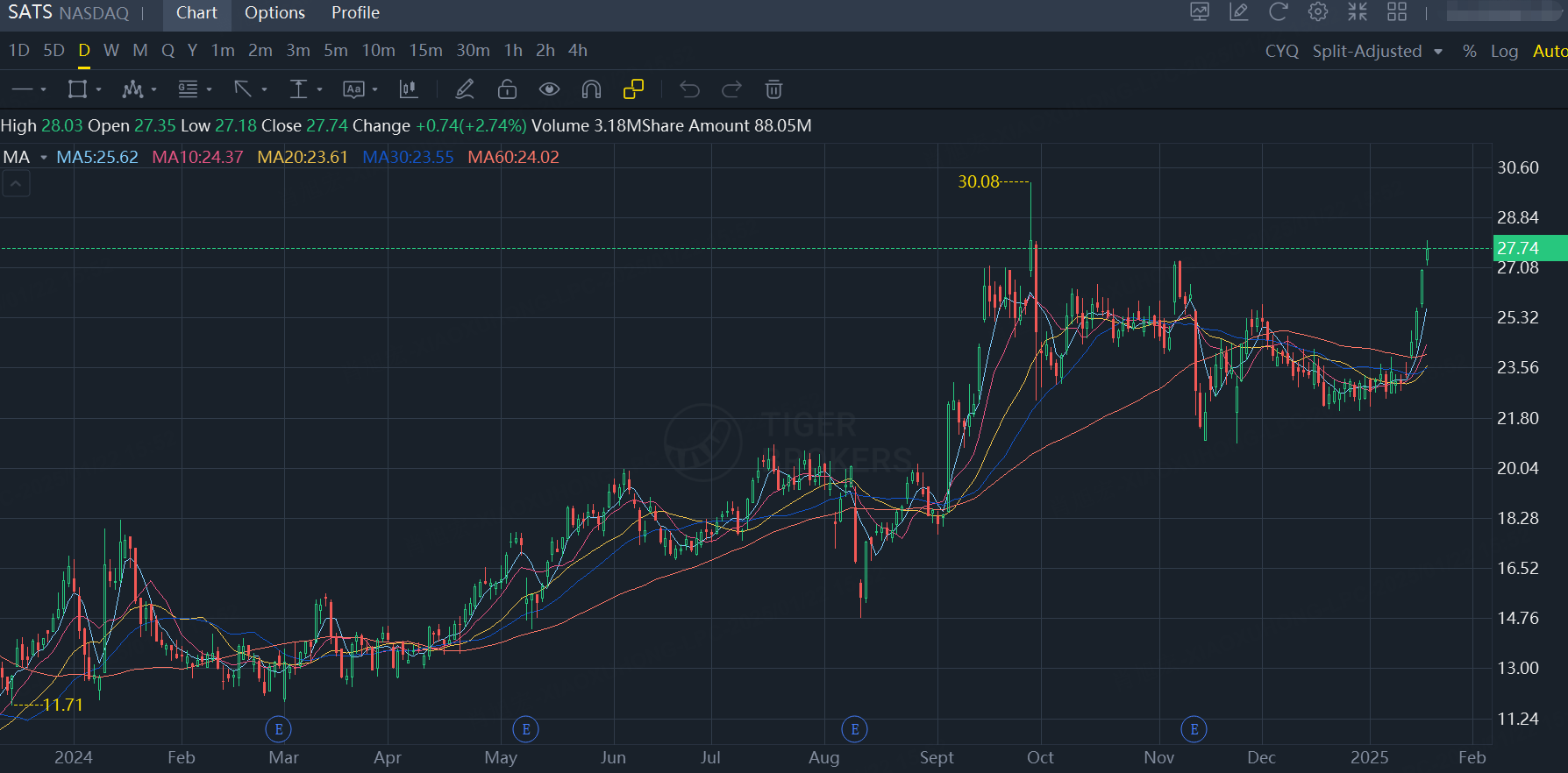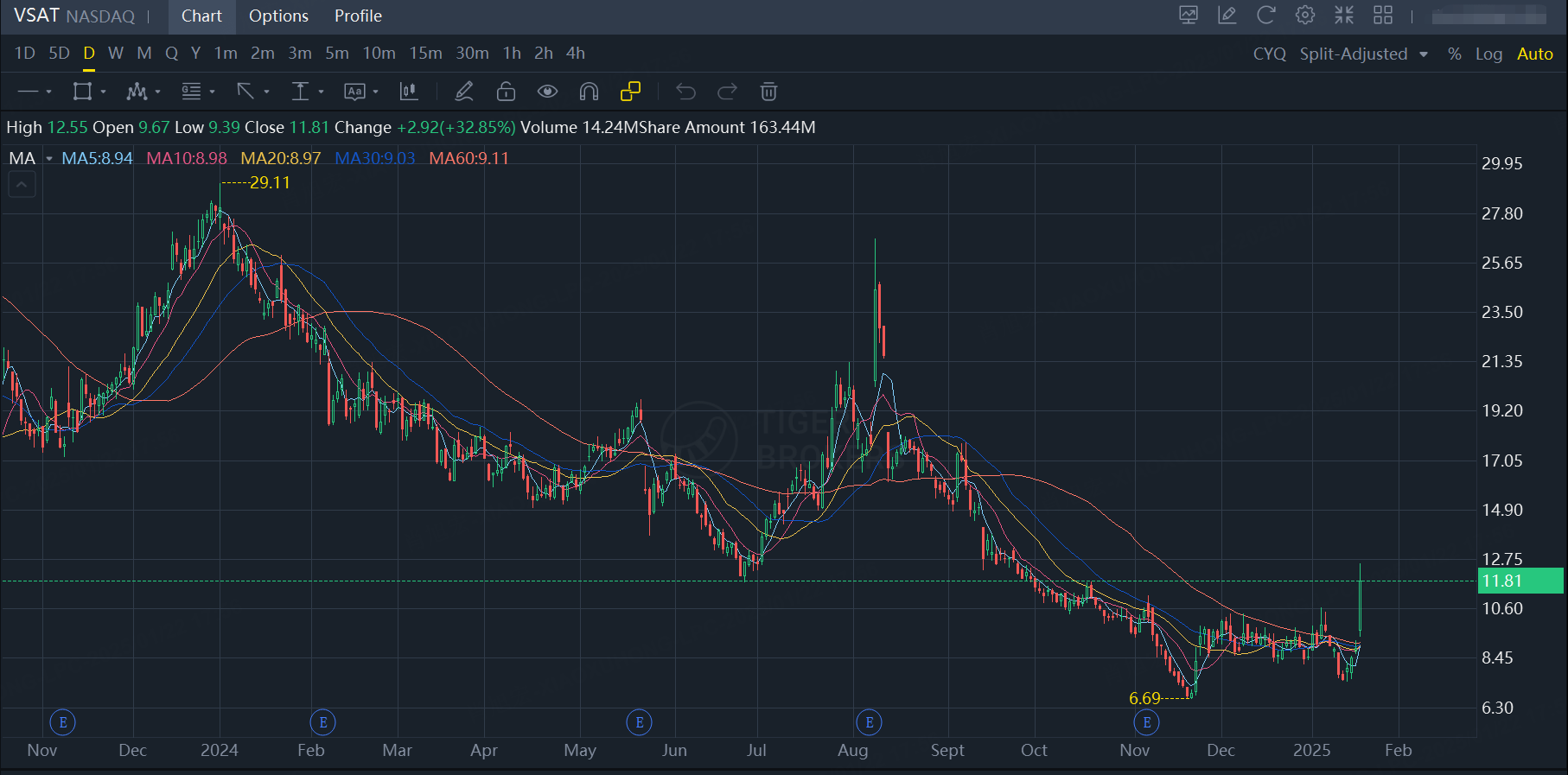 3. $Viasat(VSAT)$ surged more than 32%, a leader in satellite communications