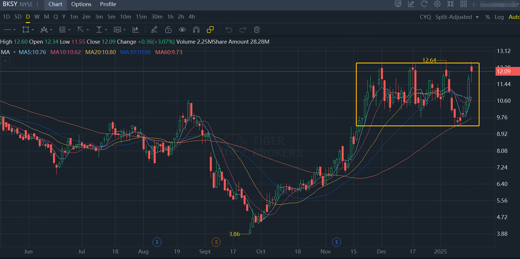 From candle and chart Looks like volume is starting to come into this $BlackSky Technology Inc.(BKSY)$ . Waiting for a break of $12.50 worth watching again.