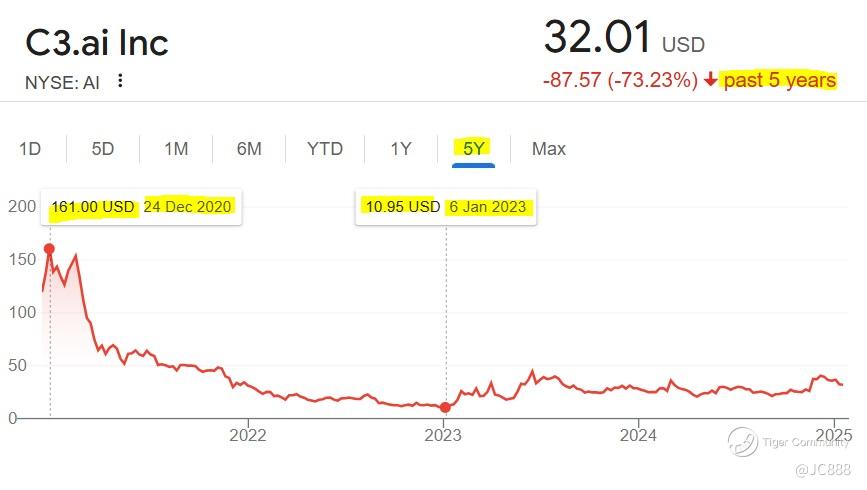 In late December 2024, downgraded C3.ai to “Underweight”, with a price target of $29.