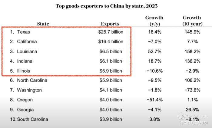 These states export the most to China, meaning job losses would be concentrated there in the event of full retaliation or a total trade cutoff.