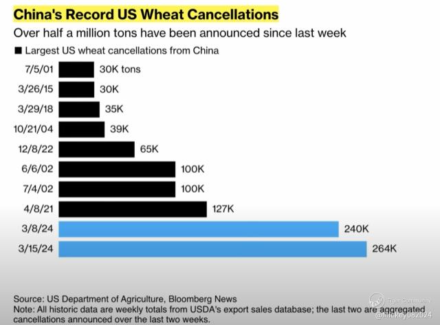 This tariff aligns with China’s broader strategy of self-sufficiency. As domestic industries step in to meet demand, China is moving further away from reliance on U.S. agricultural exports. The shift is already underway: in Q1 2024, China canceled over half a million tons of wheat imports from the U.S.—the highest volume of cancellations in decades. Even before the trade war escalated, China was increasingly focused on growing its own food and sourcing cheaper grain from Brazil.