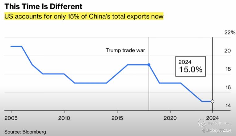 Two decades ago, the U.S. accounted for 21% of China’s total exports. However, after Trump’s first trade war in 2018, Beijing took the warning seriously. It aggressively diversified its trade relationships, increasing business with Russia, Asia, and Latin America. By last year, exports to the U.S. had dropped to just 15%.