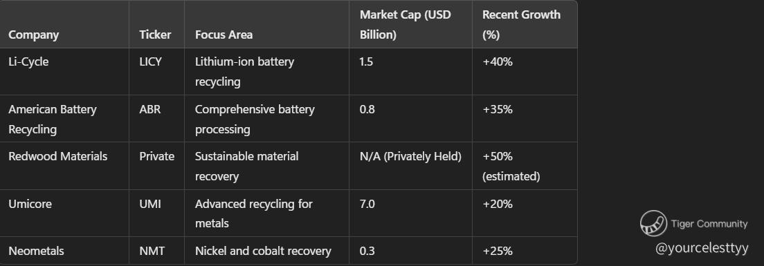 Below is a table summarizing some prominent companies in battery recycling, their focus areas, and recent performance metrics:
