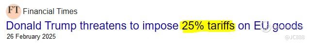 On Wed, 26 Feb 2025, Trump said his administration will soon announce a 25% tariff on imports from the European Union.