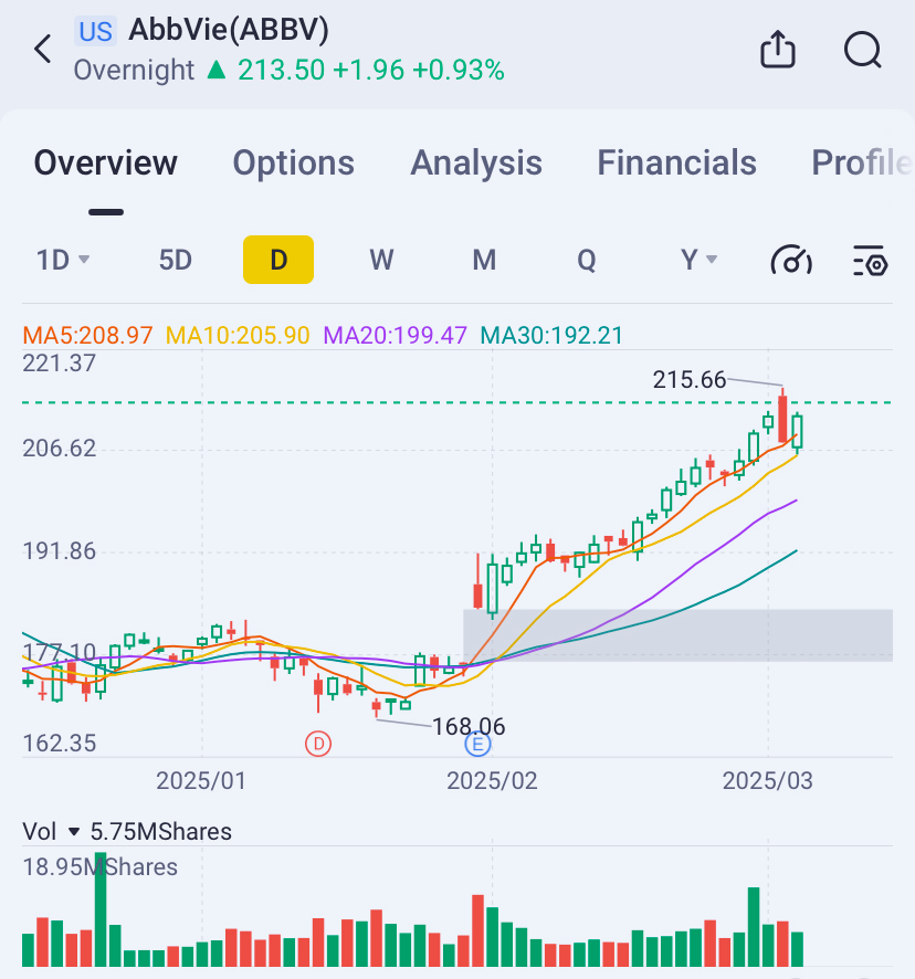 $AbbVie(ABBV)$ focuses on innovative drugs and biologics, and owns star products such as Humira. The company has leading technologies in multiple therapeutic areas such as immunology and oncology, and its product portfolio is diverse and constantly innovative.