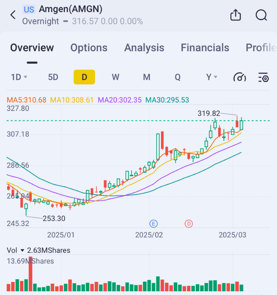$Amgen(AMGN)$ is a leading global biopharmaceutical company that focuses on the research and development and commercialization of innovative therapies, especially in oncology, cardiovascular disease and inflammation. Its blockbuster drugs such as Prolia, an osteoporosis treatment, and Kyprolis, an anticancer drug, continue to contribute stable cash flow. In recent years, the company has accelerated the layout of gene therapy and AI-driven drug development to further consolidate its technological moat.