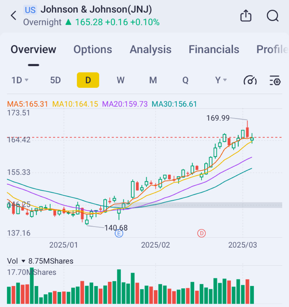 $Johnson & Johnson(JNJ)$ is one of the world's largest integrated healthcare companies, with businesses covering pharmaceuticals, healthcare devices and consumer health products. The company's diversified product portfolio and global sales network enable it to maintain a stable performance in various market environments.