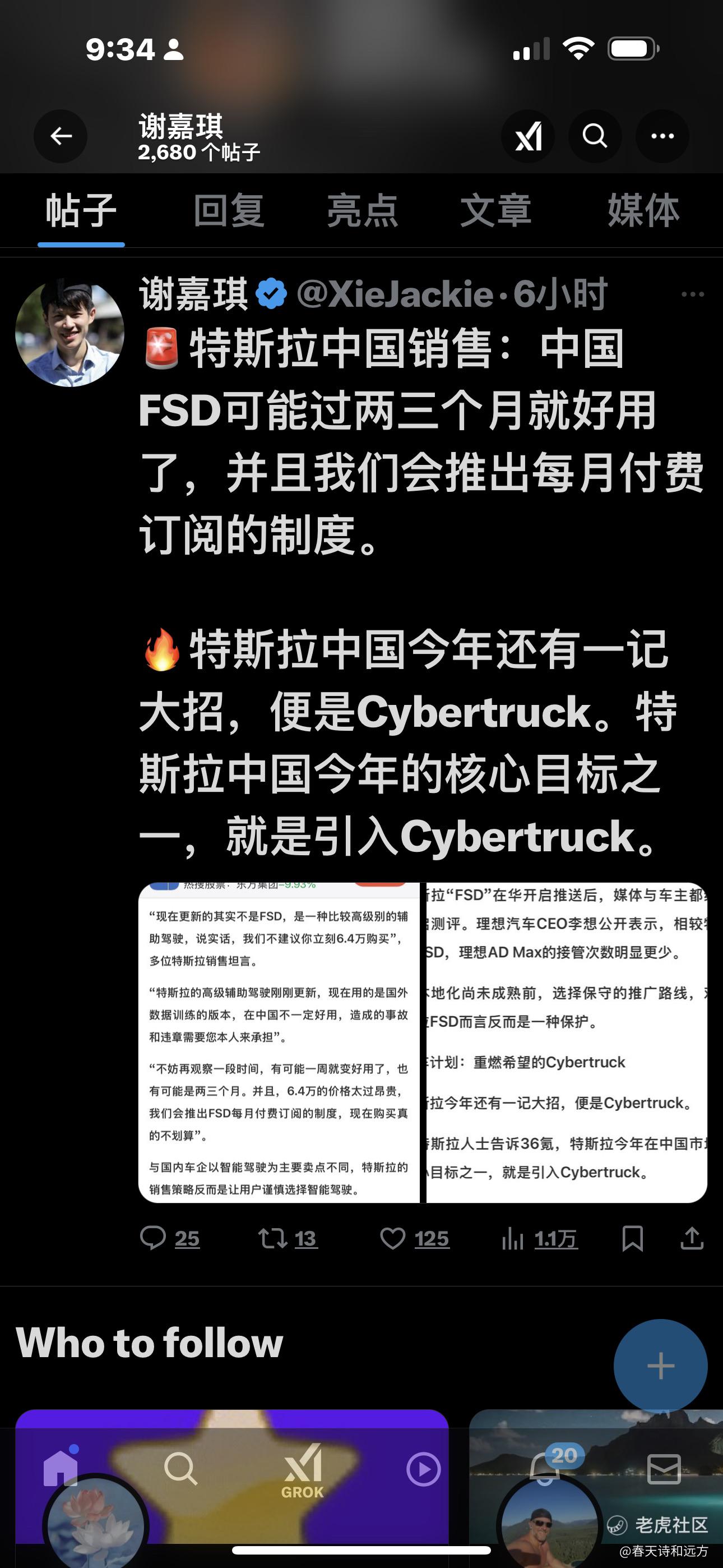 - 长浦资本·03-08TOPFSD价格放低一点,目前国内确实没有对手,可以提振销量,但cyberchuck入华可能会带来品牌价值,产能和价格摆在那,而且根据国内皮卡的不友好政策,销量不会太好!LikeReport