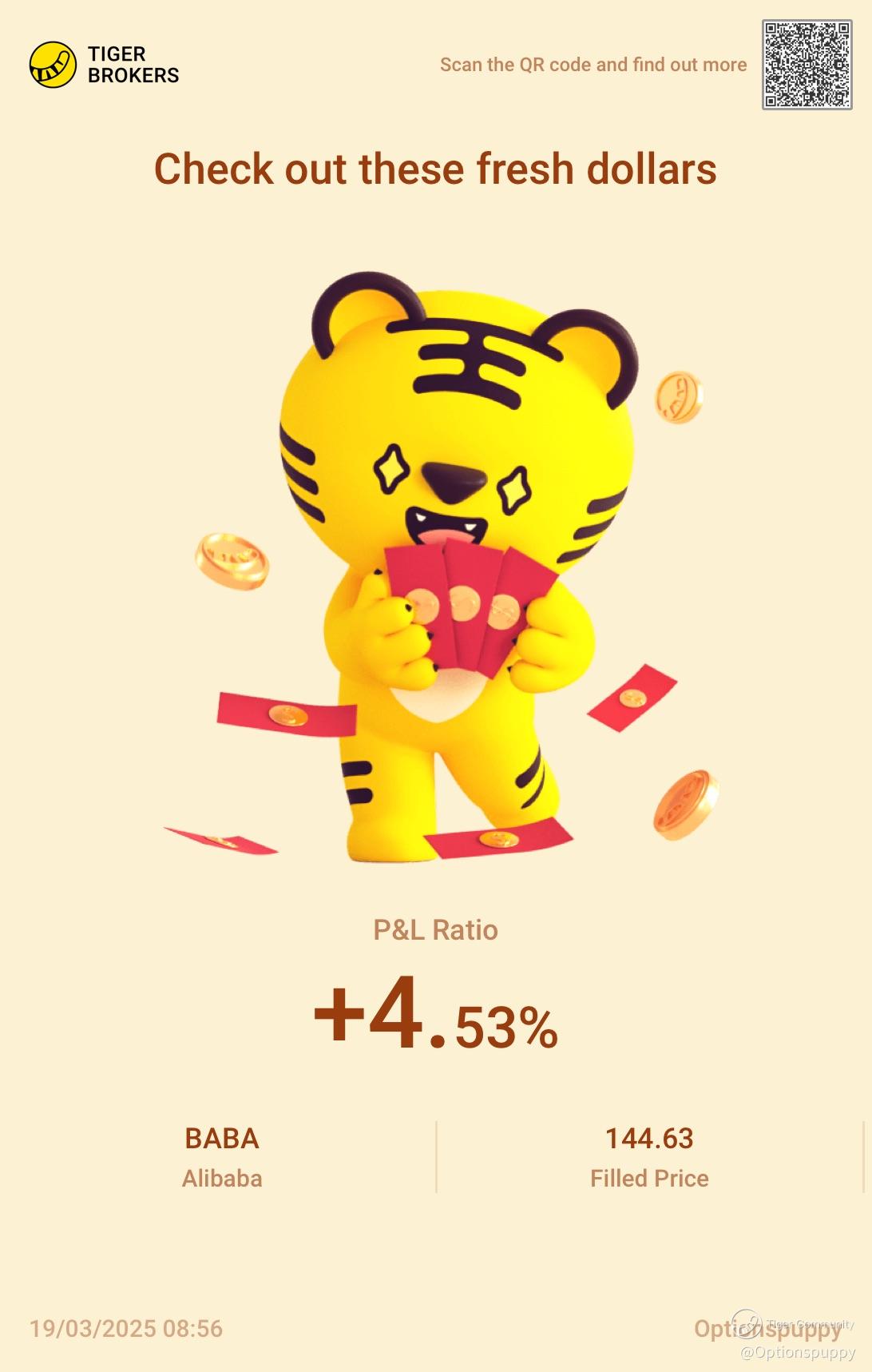 My approach remains disciplined. Selling at a high and waiting for a retracement allows me to optimize returns while minimizing risk. By following a systematic strategy based on technical analysis and market structure, I ensure that every move is based on probability rather than emotion. Alibaba’s volatility presents opportunities, and I stand ready to capitalize when the time is righ$Alibaba(BABA)$ @MillionaireTiger @TigerTradingNotes @TigerStars @CaptainTiger @CaptainTiger