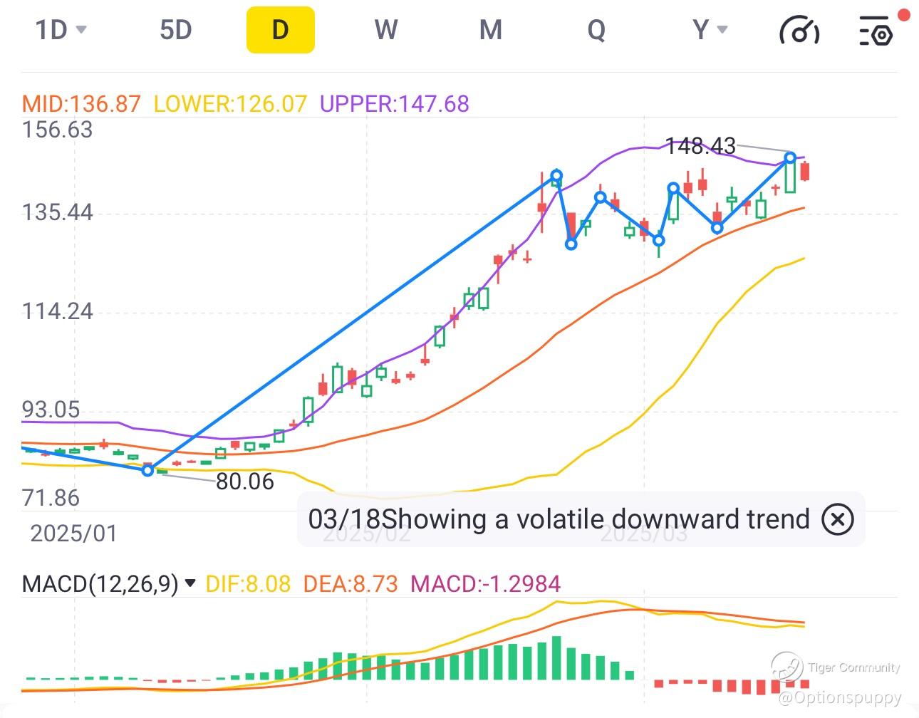 Alibaba has been on a strong upward trend, and I capitalized on its momentum by selling at what I identified as a short-term high. The technical indicators confirmed my decision, as the stock reached $148.43 before showing signs of exhaustion. The Bollinger Bands suggested it was approaching overbought conditions, and with the MACD beginning to turn, I recognized the opportunity to lock in profits.