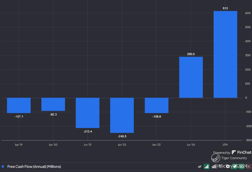 Looking at Affirm’s cash flow from operations as a percentage of sales, there’s been a significant improvement since 2023, now reaching 28%. This suggests that the company is transitioning into a more stable financial position. With cash flow turning positive, Affirm no longer needs to rely on low-margin deals to sustain growth.