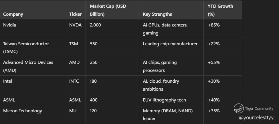 $NVIDIA(NVDA)$ $Advanced Micro Devices(AMD)$ $Taiwan Semiconductor Manufacturing(TSM)$ $Intel(INTC)$ $ASML Holding NV(ASML)$